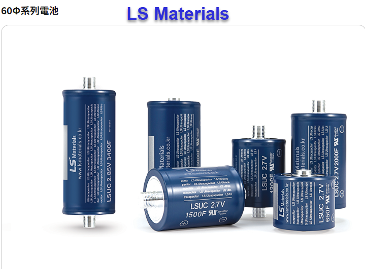 LS材質的性能介於傳統電解電容器和可充電電池之間。 LS材料的高能量效率、高功率密度和長期可靠性使其可作為多種領域的能源,例如停電緊急電源、輔助電源和瞬時輸出電源。| 60 ∅ 시리즈Busbar connection type cell | |||||||